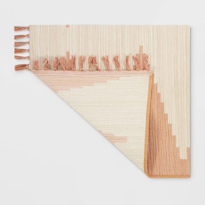 The Tapestry Woven Outdoor Rug from Opalhouse™ is a great way to tie together a specific outdoor spot while separating it from the rest of the yard. Made of lightweight material, this rectangular area rug showcases a beautiful woven row of white diamonds running down the middle of a rust background, as well as rust tassels on the corners for added flair. The woven area rug sports a flat-pile construction that allows for easy maintenance and effortless placement, along with spray latex backing to help keep it in place wherever you choose to spread it.