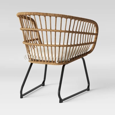Add an easy and elegant boho look to your patio dining table, sun room or other location where you relax or entertain with this Southport 2pk of Patio Dining Chairs from Opalhouse™. These charming wicker patio chairs feature a rust-resistant steel frame base, topped with weather-resistant woven wicker for a breezy bohemian look you’ll love. Tall, curved backs and soft seat cushions make for a comfortable feel while you dine or chat with guests, and the seat cushions secure to the frames with ties so they stay put when sitting while offering easy removal when needed.